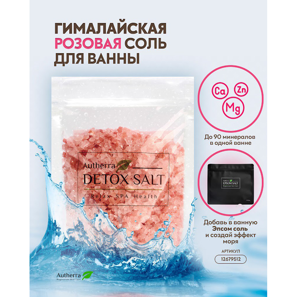 Гималайская розовая соль от Autherra - это состав из 90 различных элементов, которые очень полезны для нашего организма: магний, медь, калий, кальций, бор, железо, фтор, йод, хром, марганец, селен, цинк, радий и платина. Благодаря высокой концентрации минералов гималайская соль помогает выводить жидкость из организма, уменьшает воспалительные процессы, помогает обмену веществ. Характерный нежно-розовый оттенок соль получила благодаря высокому содержанию железа.