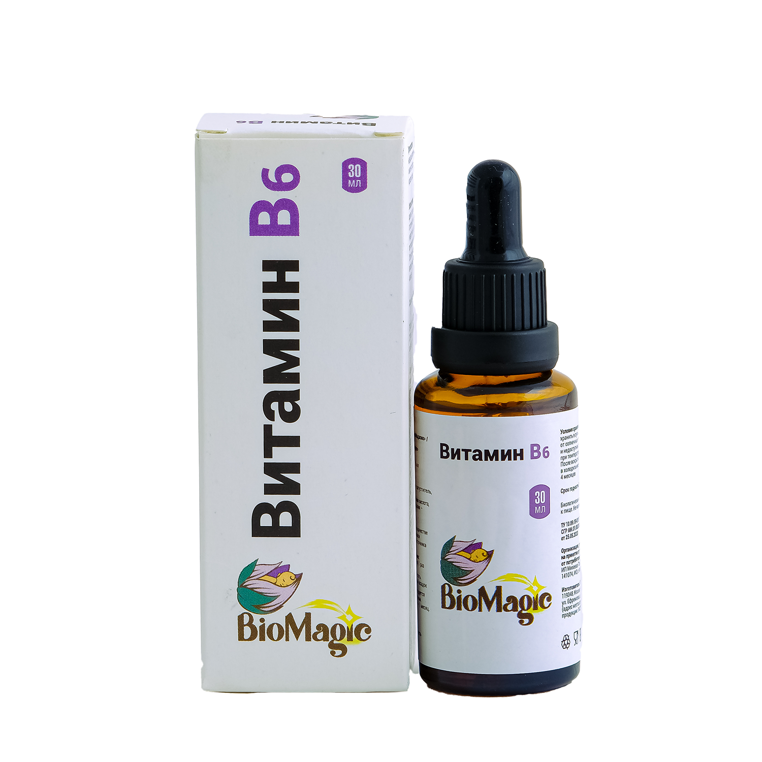 Витамин В6 от BioMagic представлен в активной форме пиридоксаль-5-фосфат, которая используется в организме как кофермент белков в переработке аминокислот и усвоении белка. Пиридоксин помогает в производстве кровяных телец и гемоглобина, что обеспечивает клеткам равномерное снабжение глюкозой. Он также способствует сохранению гликогена в печени и мышцах, а также помогает в поддержании нормального уровня жидкости в органах. Витамин В6 стимулирует желчеотделительную функцию печени и участвует в производстве эритроцитов. Баланс калия и натрия остается стабильным благодаря действию пиридоксина, что имеет важное значение для работы нервной системы и улучшает память. В6 хорошо сочетается с магнием, что увеличивает его эффективность.