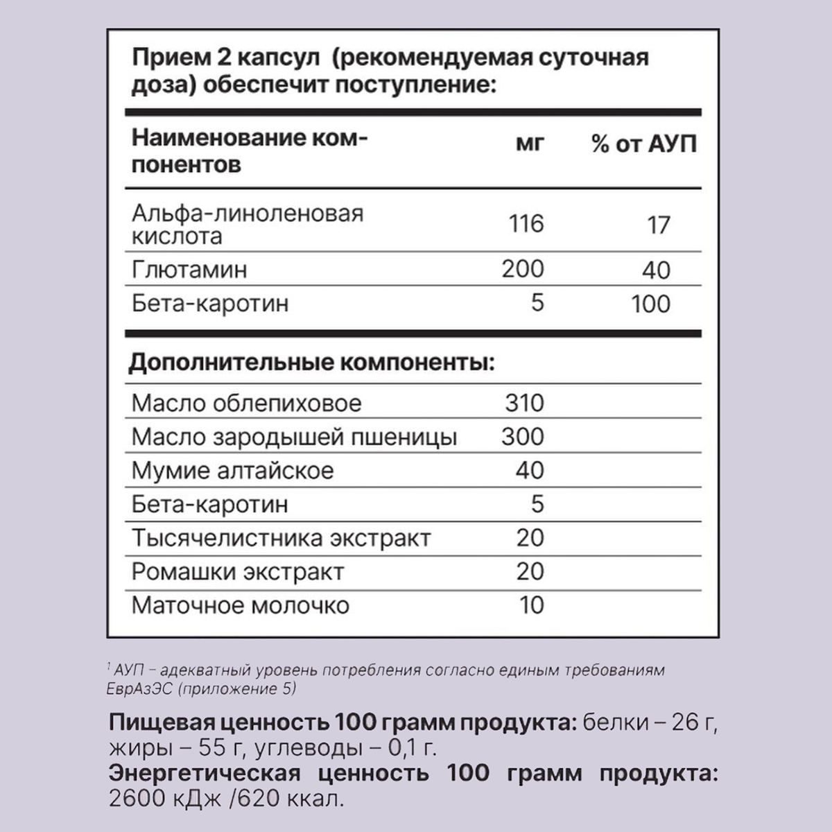 Мумие в составе комплекса работает по заживлению желудка и кишечника и включает огромное количество минеральных и органических компонентов, является природным антибиотиком. Так как мумие обладает бактерицидным свойством, оно оказывает заживляющее действие на кожу, питает ее, уменьшает воспалительные процессы.